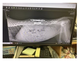 2年前に子猫で沖縄から安楽死と言われてしまった当時、下半身麻痺だった猫で、当会で引き取りました!折れた箇所は石化してたので手術はできずリハビリで順調に回復し歩けるようになり自力で排尿排便できましたが石化してくっついた骨盤がウンチの通り道を狭めてしまい2年間、毎日の下剤なしにはウンチが出ません