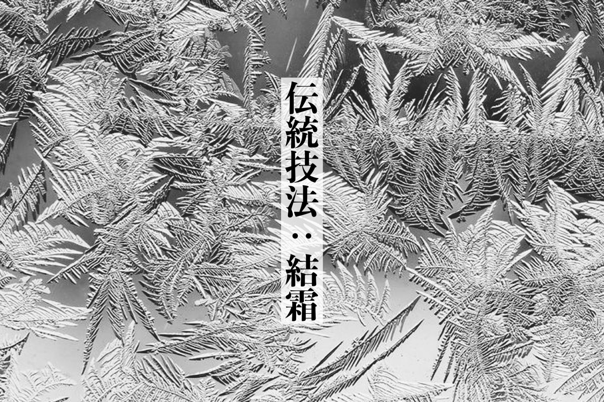 一面の霜が降る注いだような自然の芸術から名づけられた結霜。ガラスの表面に塗った膠(にかわ)が乾く際に表面がはじけたできる繊細な模様はひとつとして同じものがありません。職人がひとつひとつ丹精込めてこの風情を表現しています。