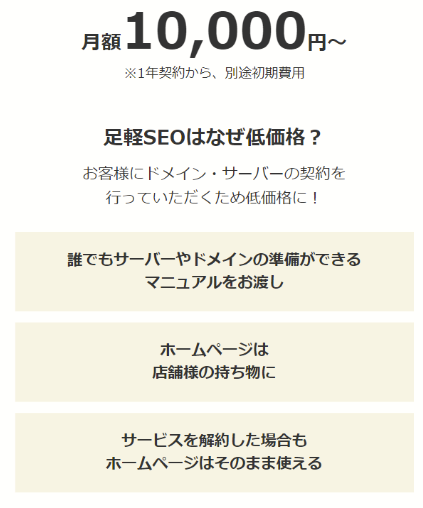 足軽SEOは、Webサイトの制作と運用を1万円から可能にするサービスです。