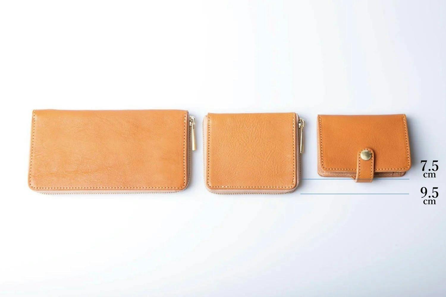一般的な長財布、ファスナー型のコンパクト財布とのサイズ比較です。
