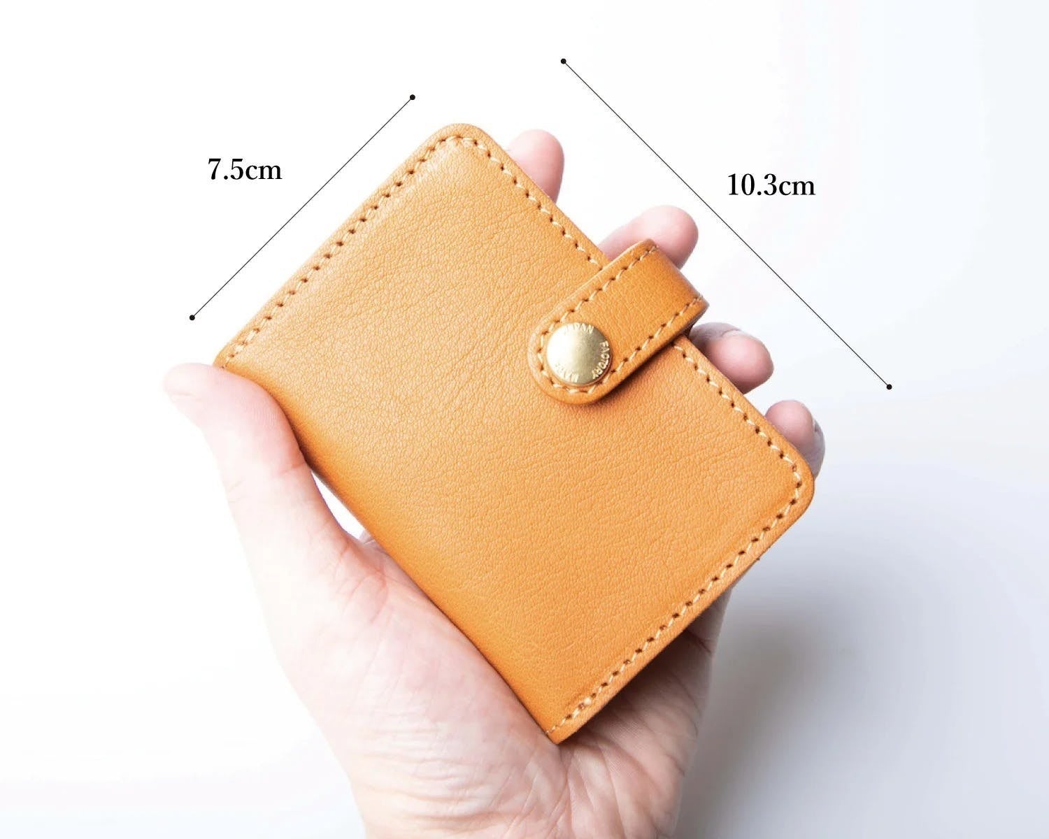 収納力と使いやすさを兼ね備えながら、サイズは約縦7.5cm×横10.3cmと、手のひらにサイズに収まるように仕上げています。