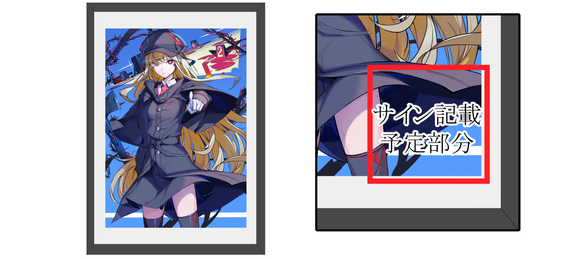 ※赤い線で囲っている部分にサインとシリアルナンバー記載予定です。(変更になる場合があります)