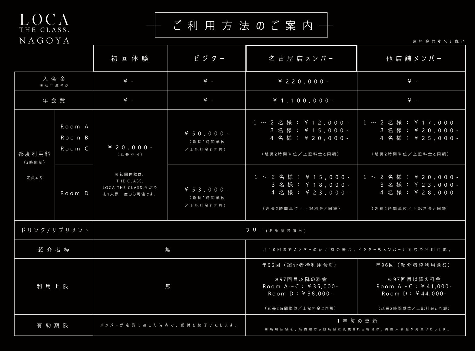 ー利用方法 初回体験、ビジター共に1部屋4名様までご利用可能。会員様は人数により変動。