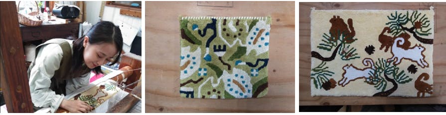 伝統工芸としての緞通「古緞通」をお部屋で触れて体感して頂くと同時に、緞通の世界に新しい感性を表現しようとしている若い作家さん廣津まゆさんの作品を飾らさせて頂きます。廣津さんはイラストを描く傍ら緞通に魅せられ九州から赤穂に来られ独特の緞通を作っています。