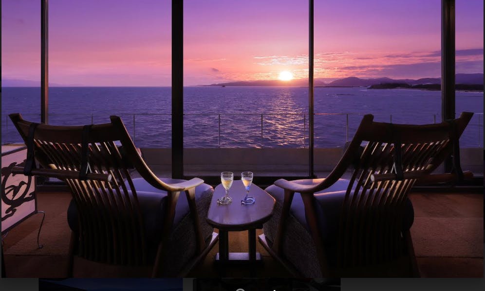 最上階の青雲(702号室)から見る、瀬戸内の海に沈む夕陽は絶景です。