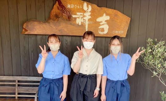 私たちは赤穂温泉 祥吉の田中望と橿本七海、岩城世里加です。赤穂温泉は瀬戸内海国立公園の中、御崎にあり瀬戸内海に沈む夕陽が絶景の温泉地です。今回は赤穂の伝統に触れて頂け、私たち女性の感覚を活かした露天風呂付御当地ルームを作ろうと考えクラウドファンディングの会員の皆さまに特別価格でご利用頂こうと思います。