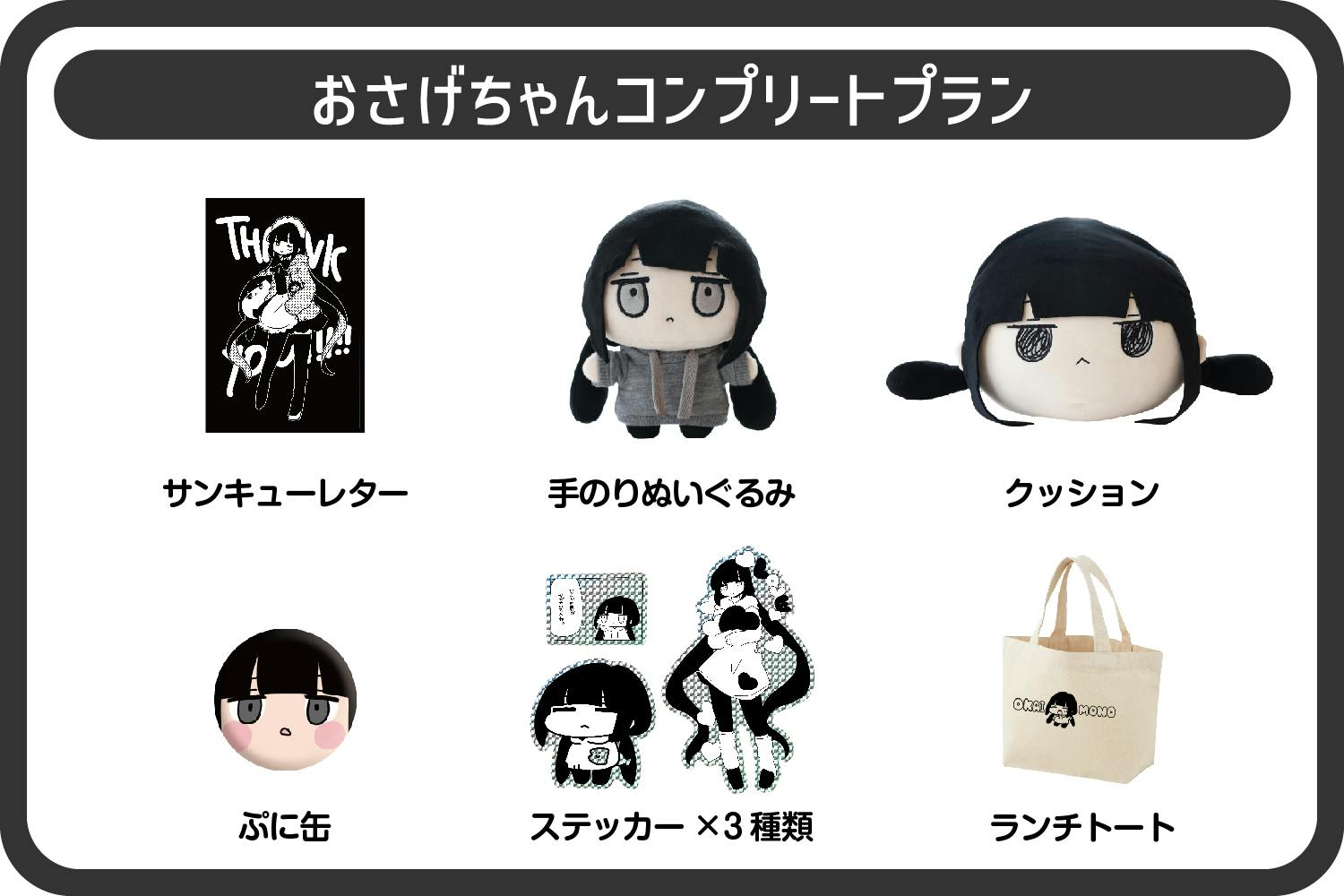 手のりぬいぐるみ2個とクッション2個、グッズセットのプランです。