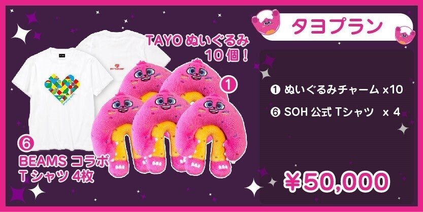 リターンのアイテムは、全部で8種類。一緒に連れて歩けるものやプレゼントに使えるものばかりです。さらに今回は、TAYOグッズ以外になんと<BEAMSがデザインした多様性を表現したTシャツ>も加わり注目度UPです♪