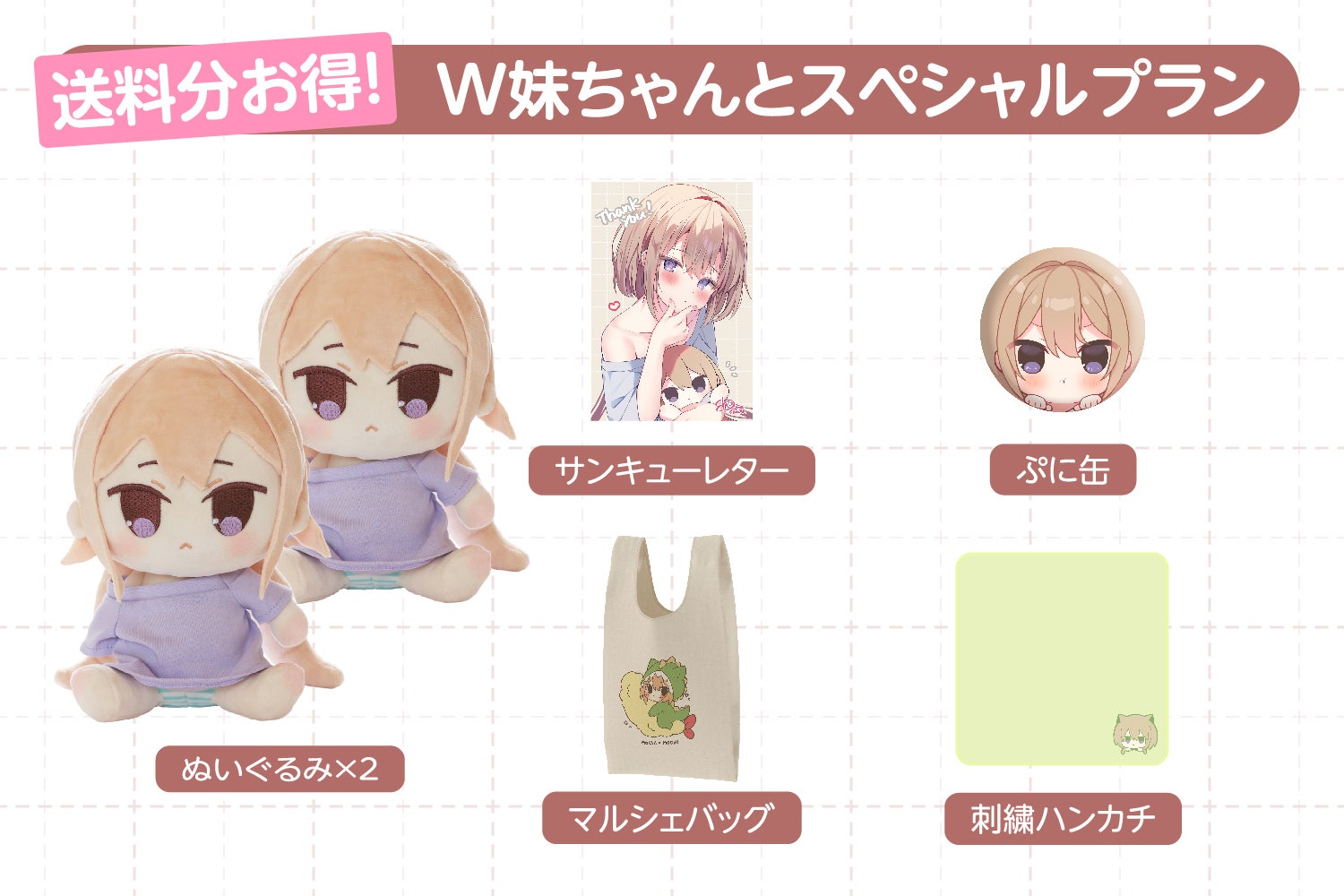 ぬいぐるみ2個とグッズがセットのプラン!