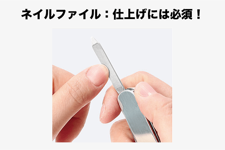 ネイルファイル:爪の先端を滑らかに整えたり、かたちを整える必需品です。