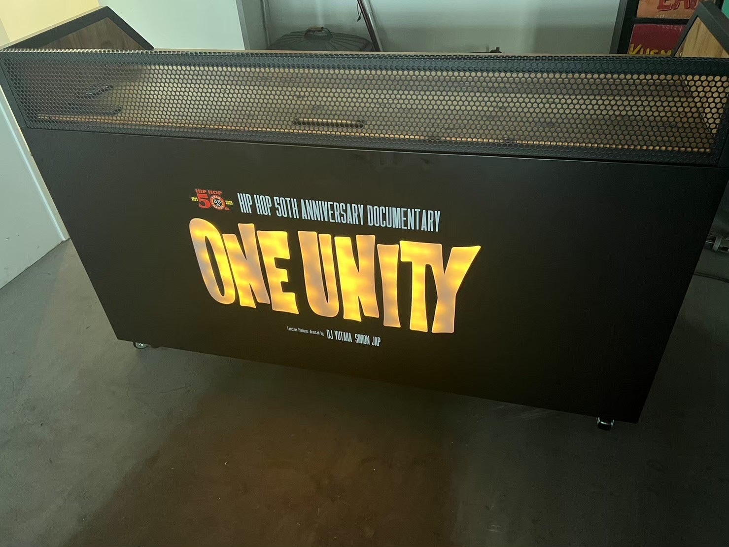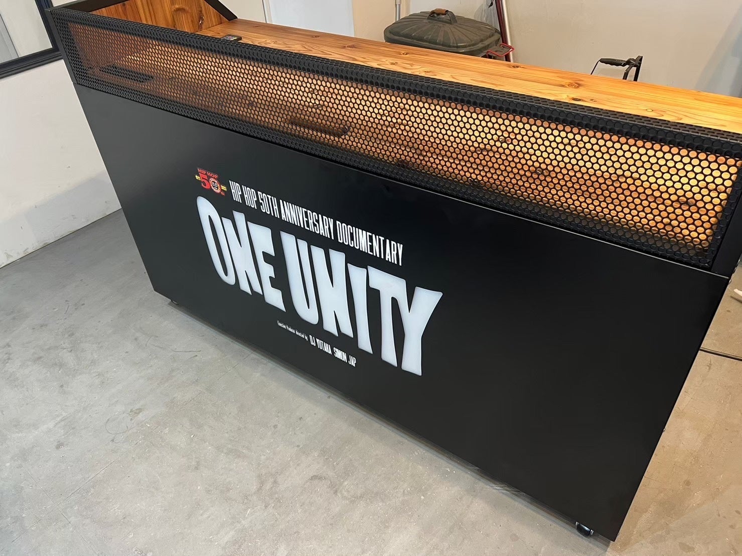 折り畳み式"ONE UNITY"オリジナルDJブースをセットし、Hip Hopには欠かせない重低音が響き渡るスピーカーから爆音を鳴らし、各地を代表するDJ、MC、ブレイカー、ライターを招き、地元のお店などにも出店して頂き、日本全国各地のHip Hopを愛する皆さんと、その街の皆さんで、Hip Hopのルーツから現在・未来繋がる街おこし的な放映会イベントを開催する事が楽しみで仕方ありません!!