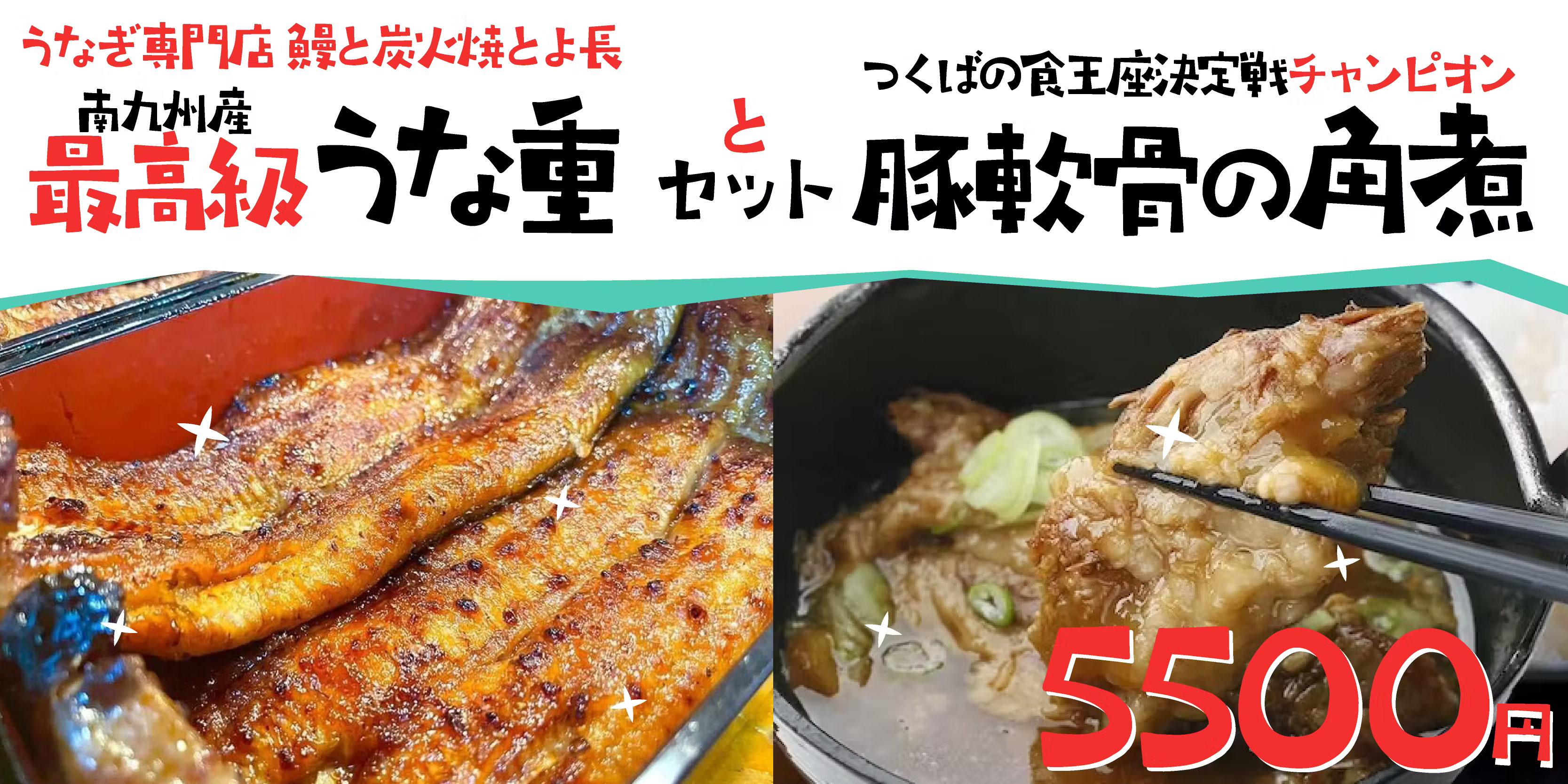 南九州産の最高級鰻を丸々一本鰻を使い、創業昭和二十七年からのタレと備長炭火で焼き上げた最高級うな重。もちろんお米、は地元つくば自慢の常陸小田米を使用。また、つくばの食王座決定戦チャンピオンに輝いた豚軟骨の角煮をセットにした、ここだけしか味わえない贅沢なセット商品です。