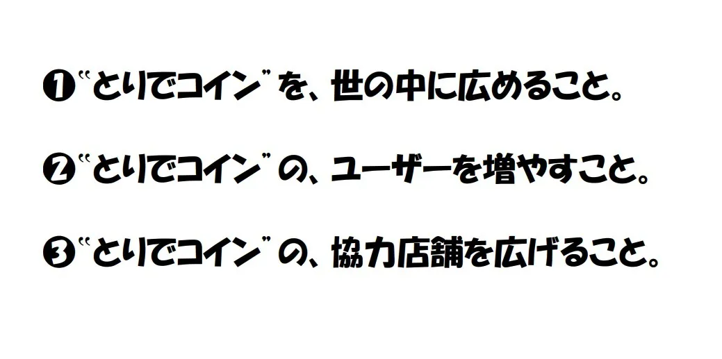 そのためにも一人でも多くの人に‟とりでコイン”の存在を知って欲しい、アプリを使って欲しいという想いで今回のプロジェクトを立ち上げました。地域を想うみなさんにとって、生活に欠かせないプラットフォーム‟とりでコイン”を目指していきます!