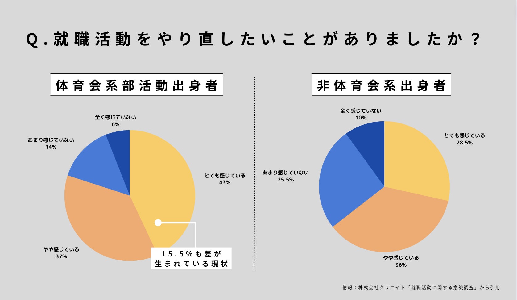そして、漠然とした悩みをそのままに、とりあえずキャリア選択をした結果、体育会人材の8割がファーストキャリアの選択をやり直したいと回答。