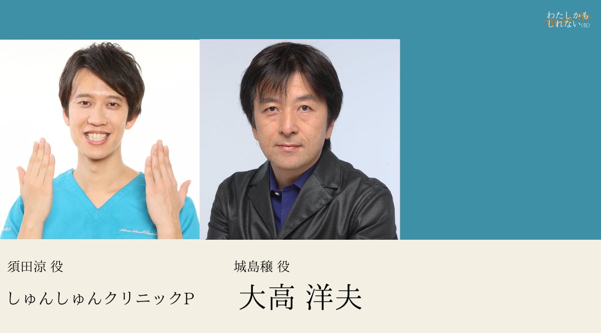 現在放送中「王様 戦隊キングオージャー」シオカラ役で話題の千綿勇平さん、医業の傍ら関⻄弁のクセ強い医者として「アウト×デラックス」、「ホンマでっか!?TV」 にも出演歴のある岡本宗史さん、今回監督を務める野本梢の作品に多く出演する⼟屋直⼦さん、村⽥啓治さんの出演が決定!詳しくはこちら