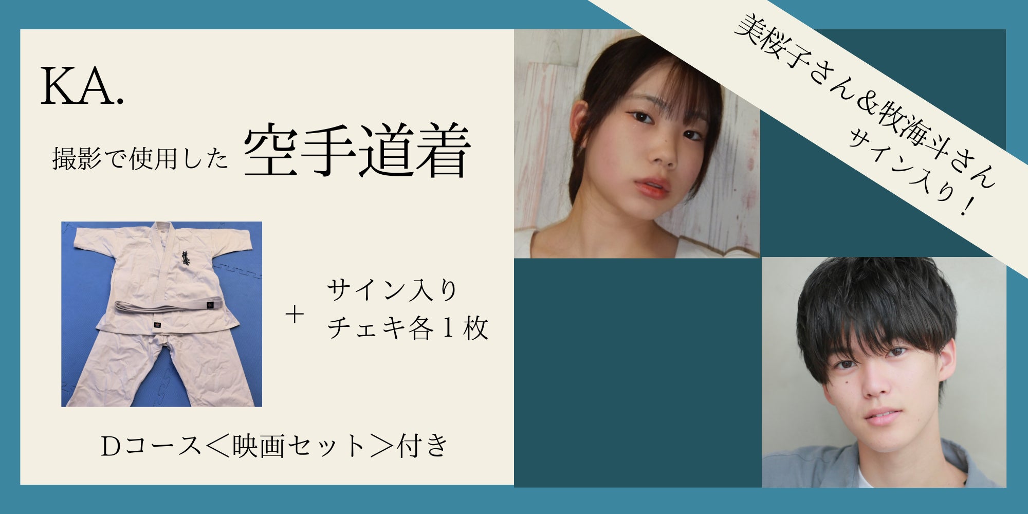 2023年11月の本編撮影で使用した空手道着に、梅野桜子役・美桜子さんと、磯部太一役・牧海斗さんからサインを頂き、リターンとしてご提供できることになりました。お2人のサイン入りチェキ(各1)もお付けします。<10,000円、提供数:1セット>
