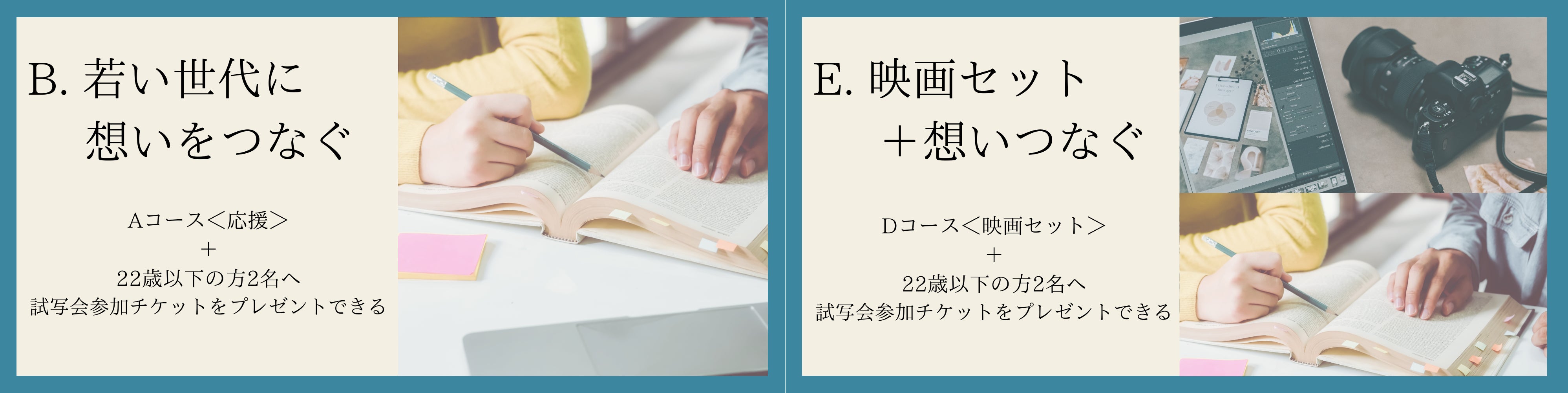 今回のプロジェクトでは、若い世代に試写会のチケットをプレゼントできるリターンも用意しています。