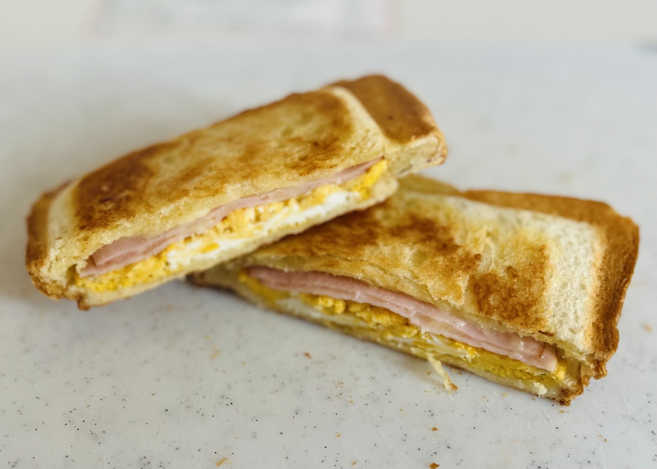 キャンプの王道朝ご飯といえば、ハムやチーズ・卵などが入ったホットサンドです。