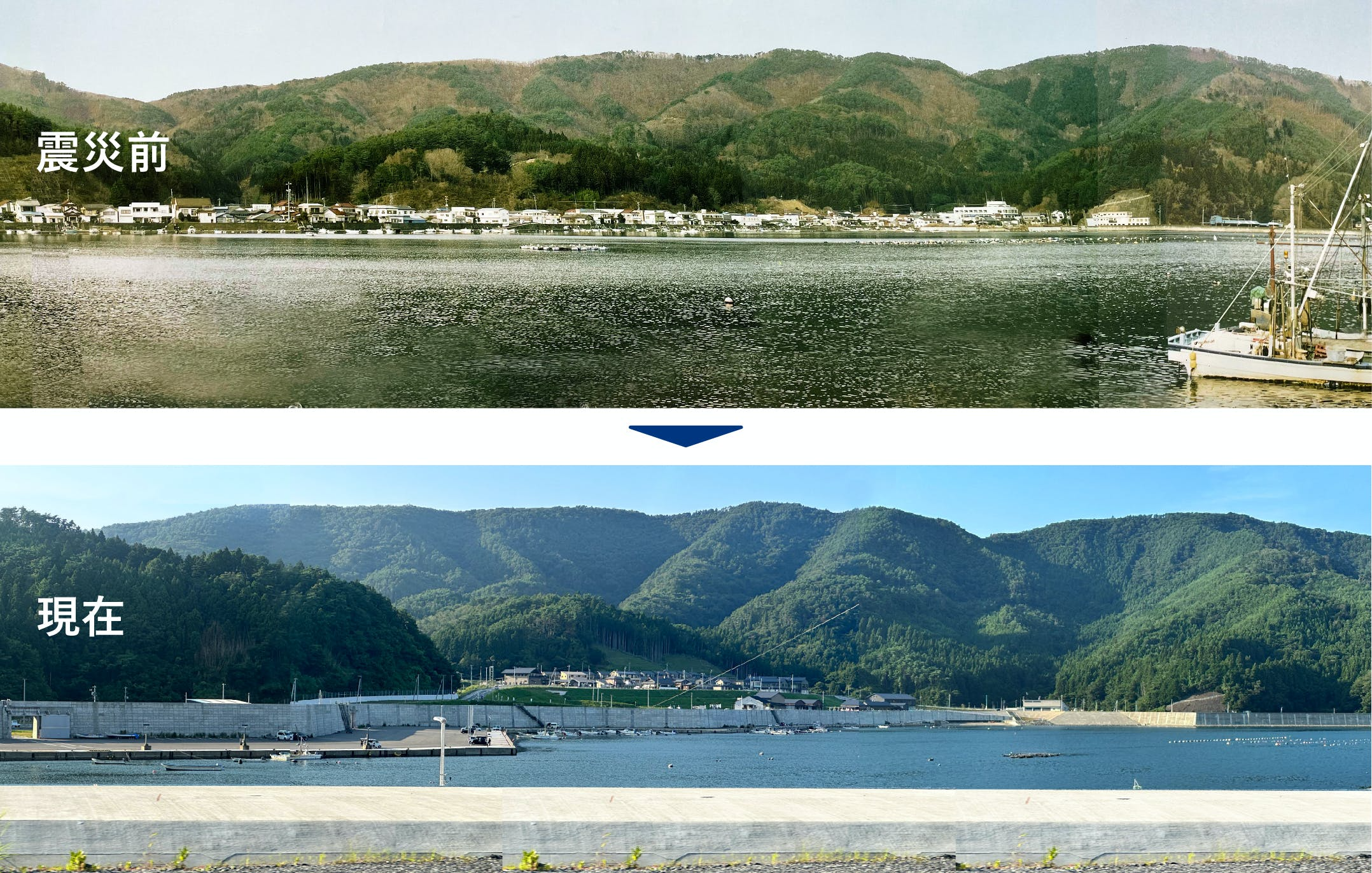 震災後には、海岸沿いに3.5kmに渡って続く、高さ最大10mの防潮堤が建設され、どこまでも続く灰色の大きな壁によって海の見えない風景が続く町に。海と生活が一体だった暮らしは変わり、風景だけでなくそこに息づいていた生活・生業・文化など様々なものがかたちを変えてしまいました。