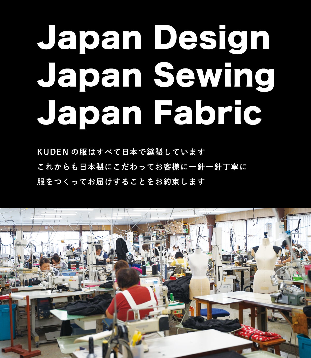 KUDENは国内海外の着物をいつか着てみたい、着物は着られるけど忙しくてなかなか着物を着られない人の為に”着物を愛する人のための洋服” を創る和モードブランドで、日本国内の生地と縫製にとことんこだわり、着物の楽しみや魅力をどうやったら洋服で再現できるかを追求しています。