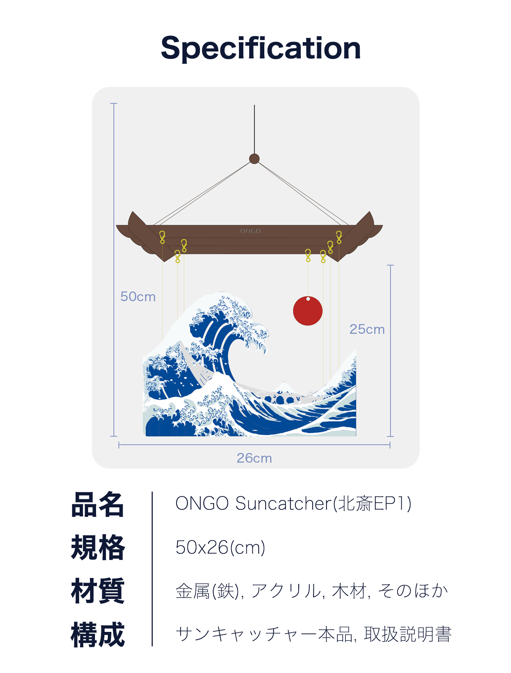 2023/10/13 17:58皆さん始めましてー!今回のプロジェクト「北斎サンキャッチャー」を担当している、株式会社オンキと申します!今回は、弊社のプロジェクトをご覧にしていただき心より深い感謝を申しあげます。今回のプロジェクトである「北斎サンキャッチャー」は、伝統的なデザイン要素と過去の名作を参考にして新たな商品を開発してきた、スタートアップチーム「ONGO」との協力で作りあげた商品です!葛飾北斎の神奈川沖浪裏の絵を見て、作品に込められた特徴を活かして、現代的なデザイン商品を開発してみようという、ONGOとONKIの両社の異議統合によって誕生したプロジェクト企画です。今後、こちらの活動報告掲示板にて皆様とコミュニケーションし続けたいと思っております。今回のプロジェクトには100名様限定のイベントもございまして、両社の利益をほぼない状態にしたリターンもございます。今後ご支援していただきました皆様にもっとプレゼントできるよう、両社とも最善を尽くしますー!ご支援、ご覧にいただき本当にありがとうございます。何卒よろしくお願いいたします。株式会社オンキ もっと見る