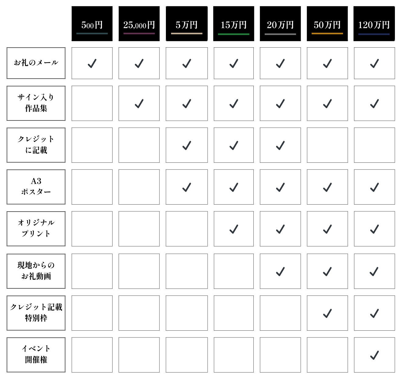 リターン内容の「クレジット掲載 特別枠」に以下の内容を追記いたしました。