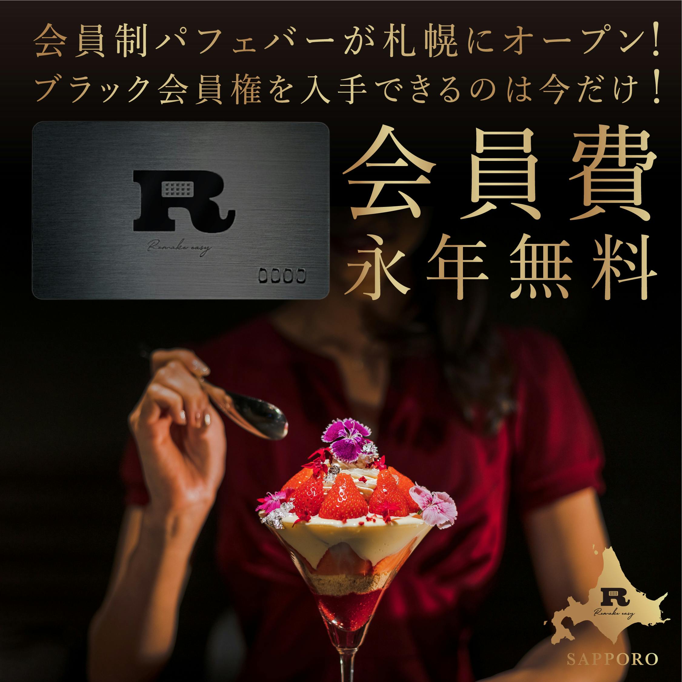 ブラック会員権年会費/月会費不要、1年間(2023/9/20~2023/9/30の期間)パフェ&ペアリングドリンクが毎月1回無料で召し上がれるクラウドファンディング限定の会員権となっております。