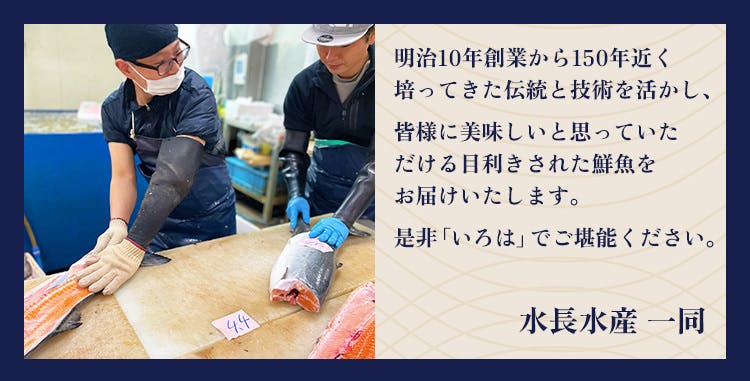 1.まぐろ専門仲卸「相馬水産」様、旬魚は「水長水産」様からの信頼の仕入れ。