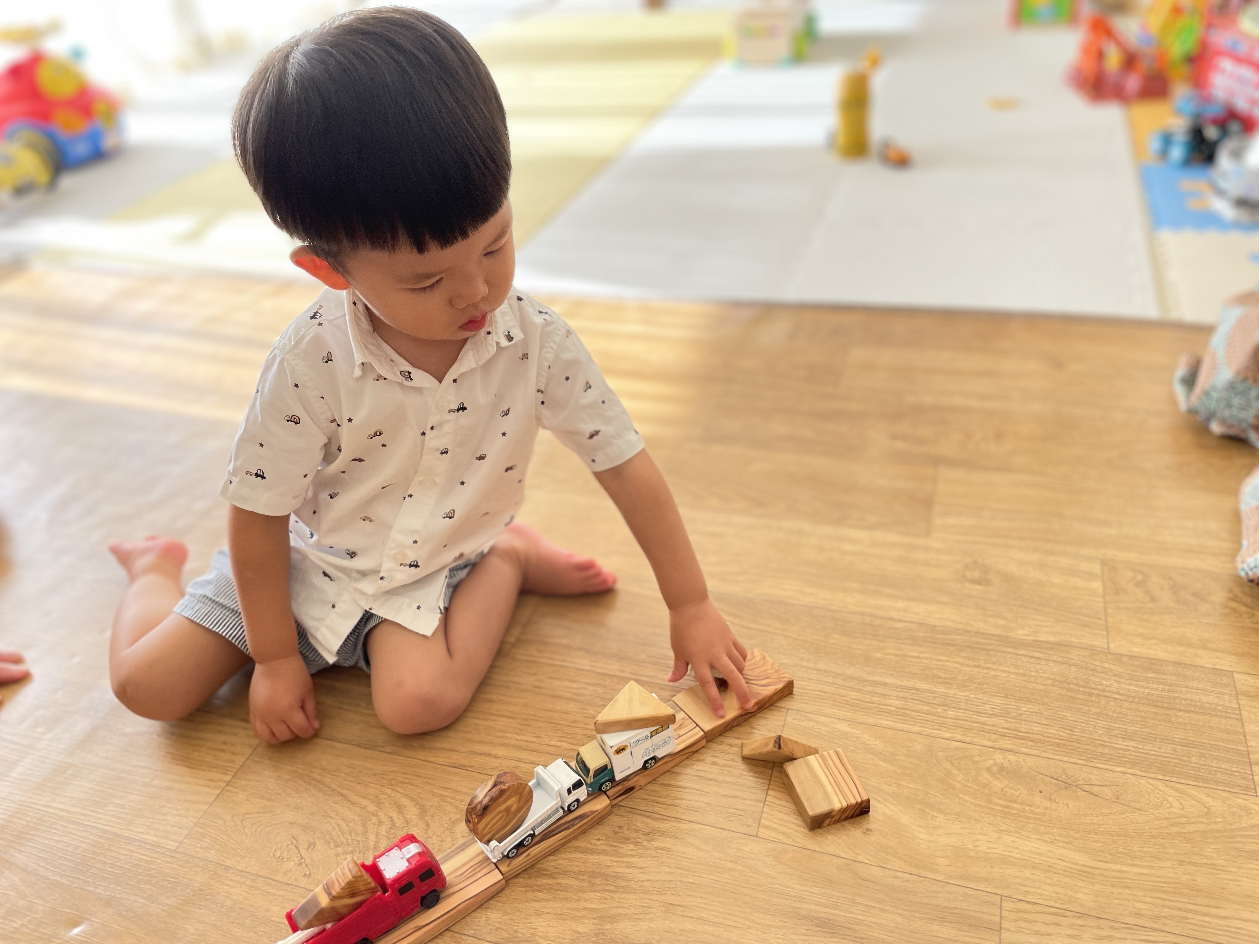 お子さんたちは一生懸命、木をつかって組み立てたり、遊んだり。親御さんも、その姿を見てとても喜んでくださいました。