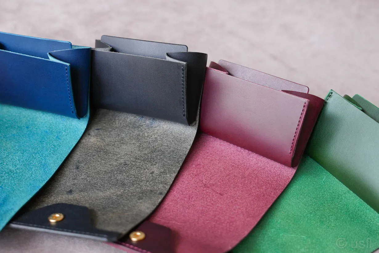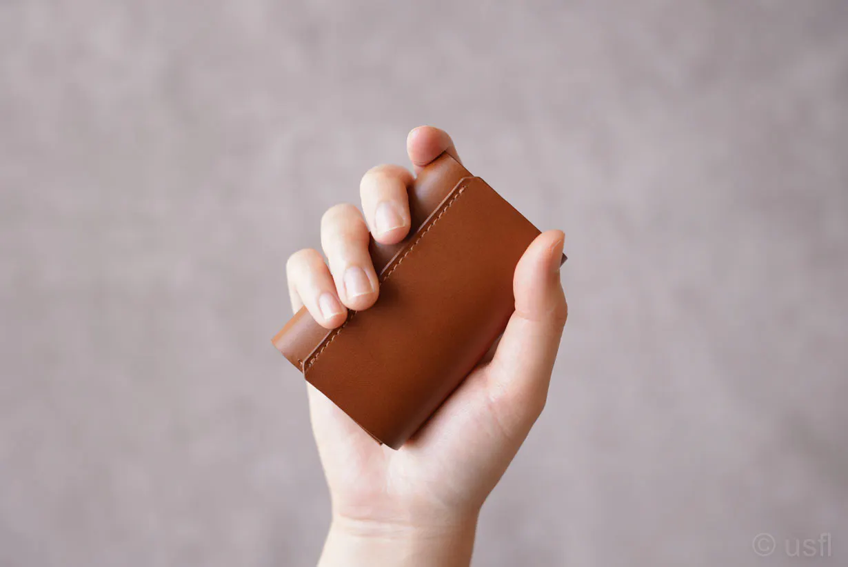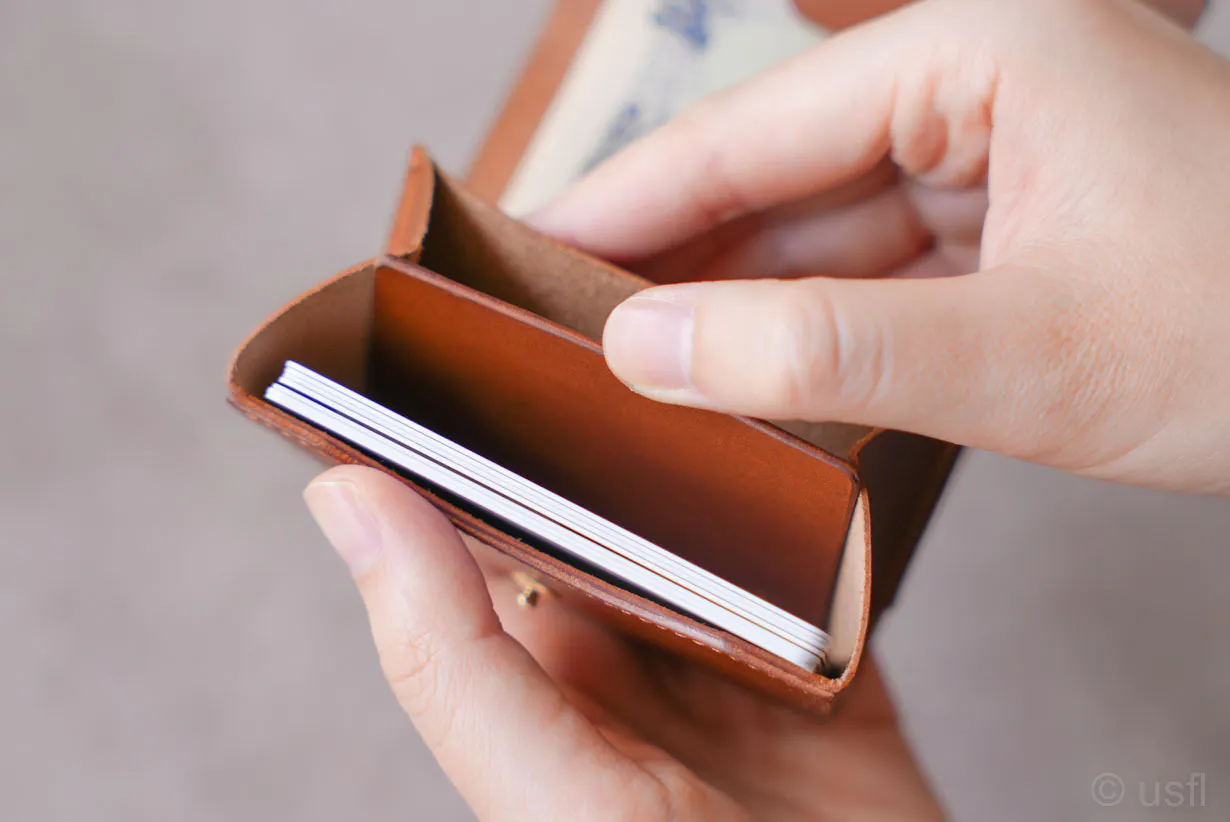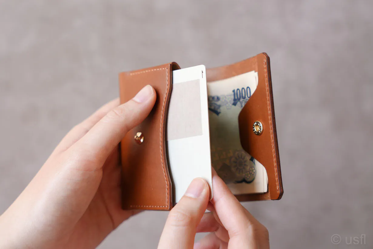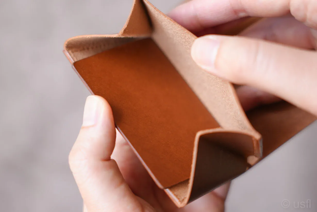 たとえば、カードの仕切りを1枚の革で作ると安価にできるのですが、操作性や耐久性などが犠牲になります。これではusflの製品とは言えません。