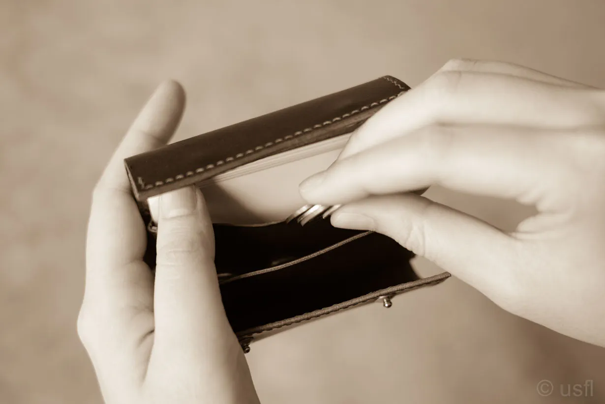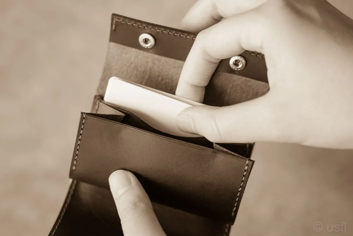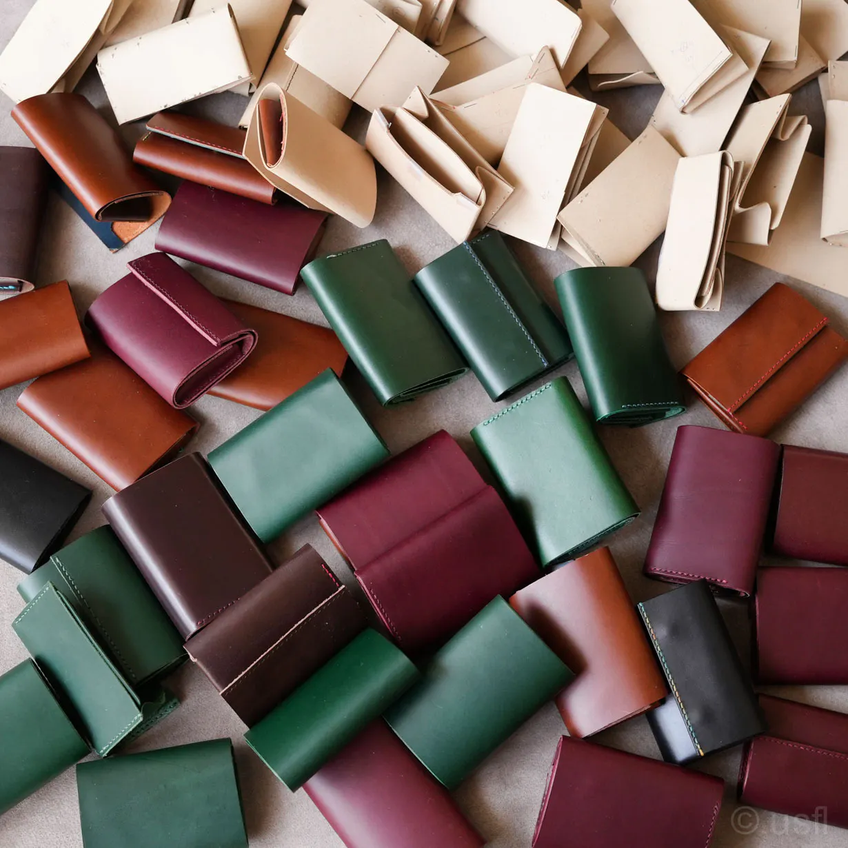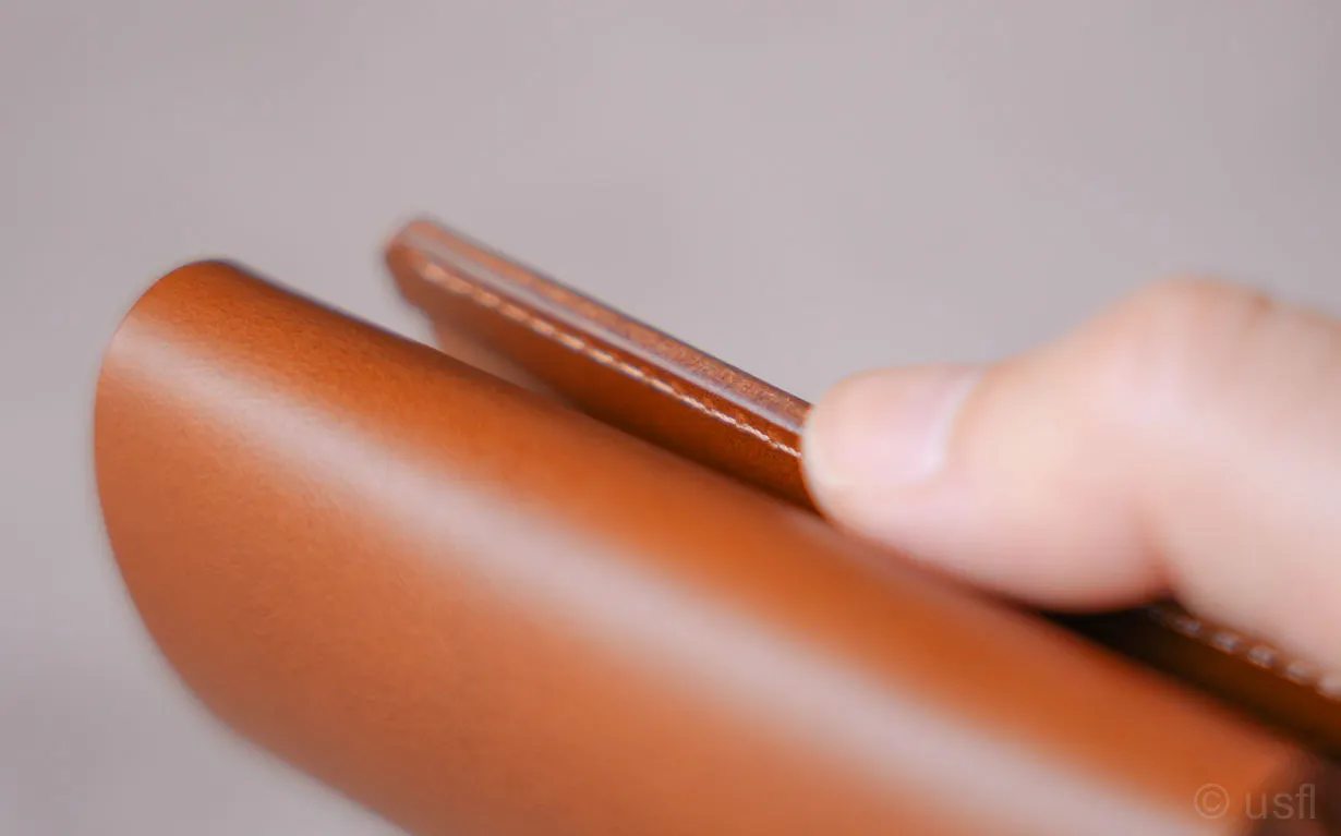 たとえば、カードの仕切りを1枚の革で作ると安価にできるのですが、操作性や耐久性などが犠牲になります。これではusflの製品とは言えません。
