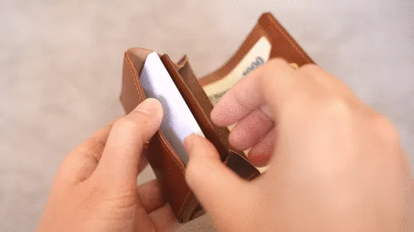 ポケットを開いたり、財布を傾ける必要もありません。ただ差し込むだけ。一瞬で収納できます。