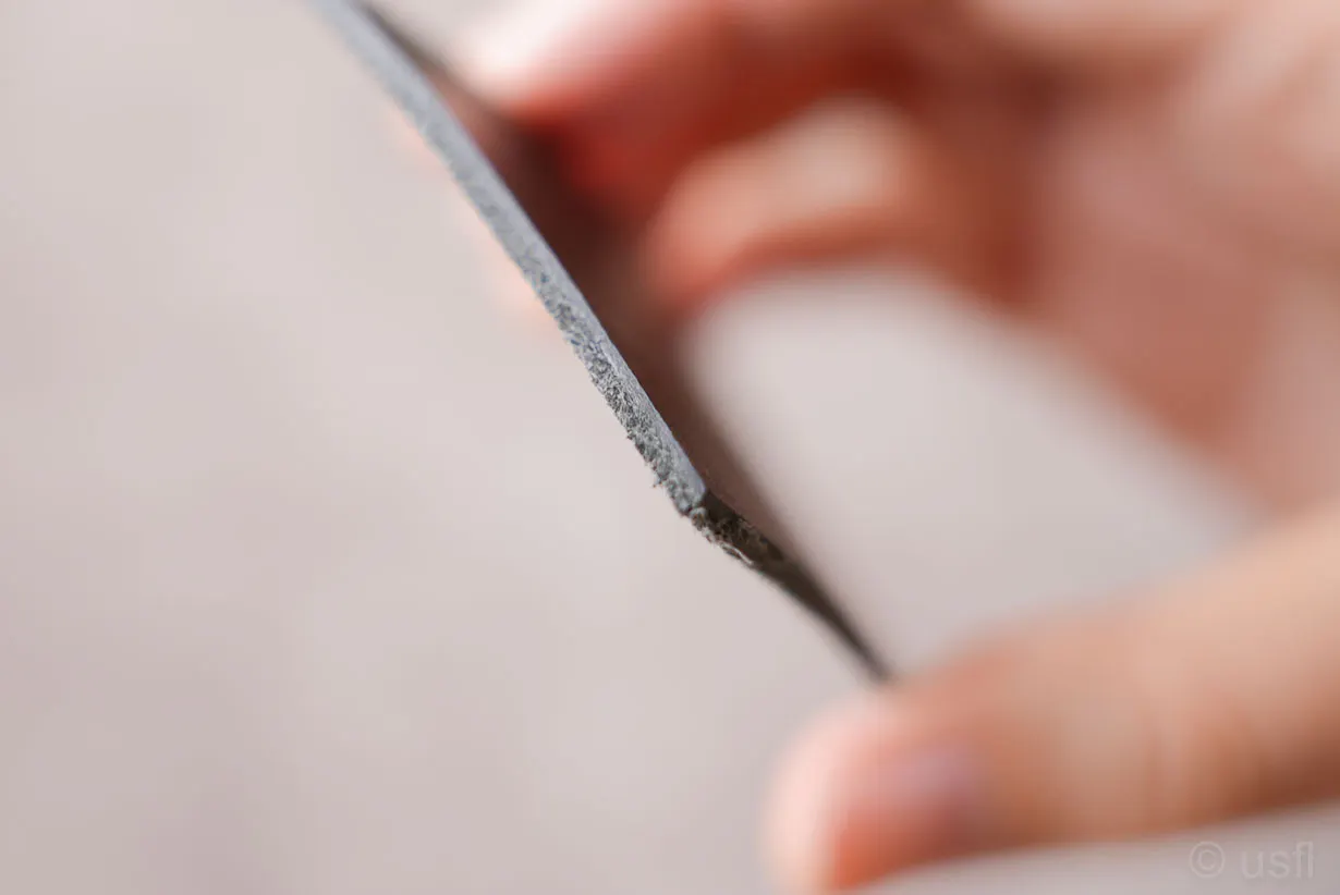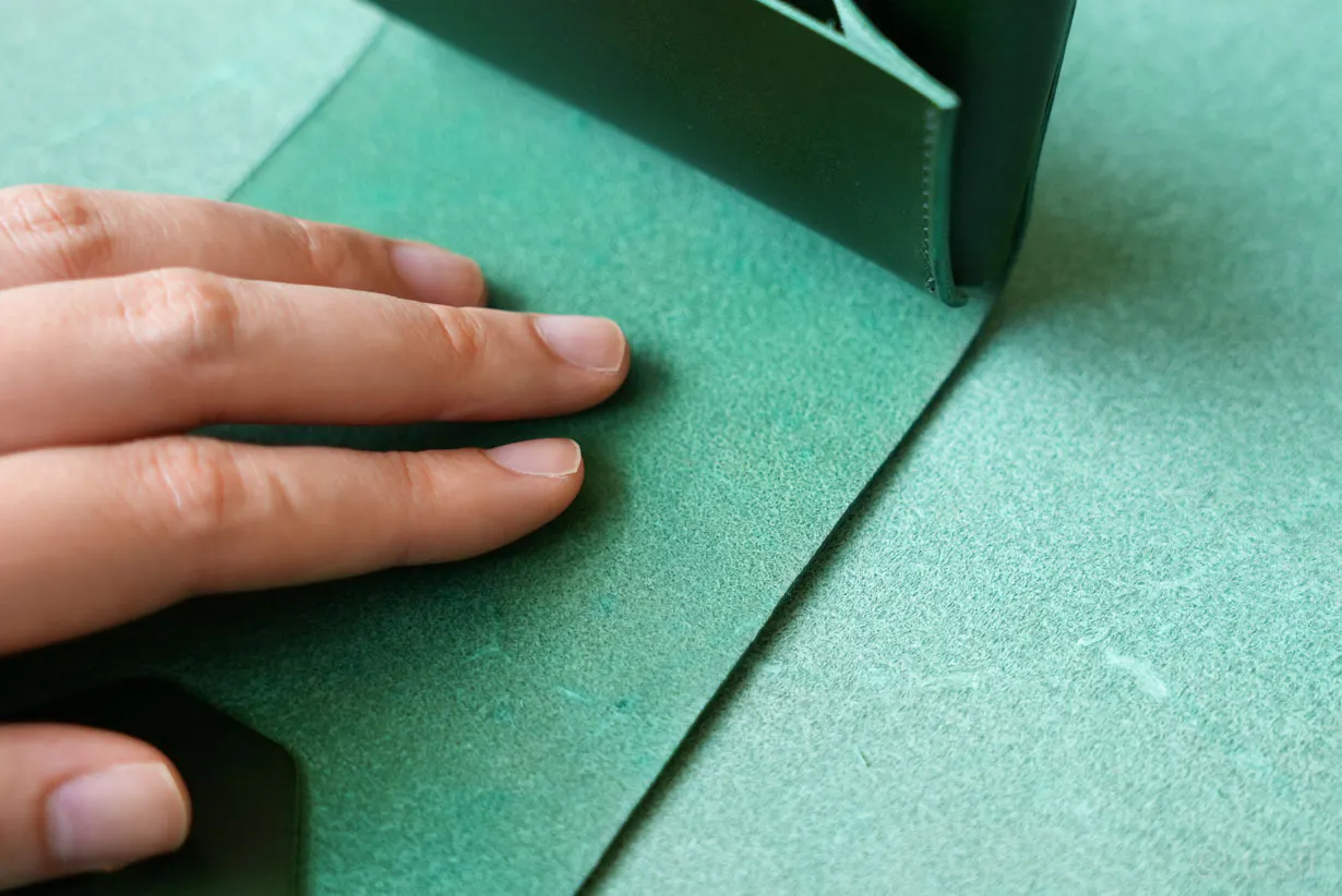 「革の裏面」は毛羽立ちやすく、お札の滑りを邪魔します。このままでは気持ちよく使えません。