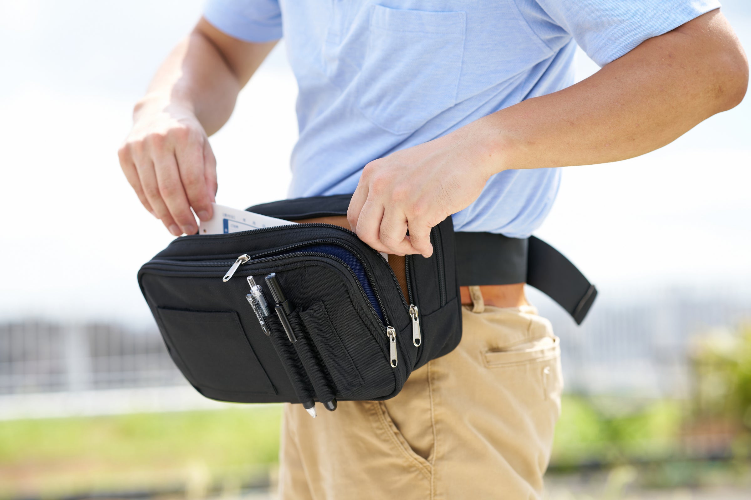 宅配業務の代引き、着払い、集金作業の効率性向上のために現役配送業者によって開発された大容量の業務用ウエストバッグ「レジポーチ」がCAMPFIREで初登場!特別価格で先行販売します!