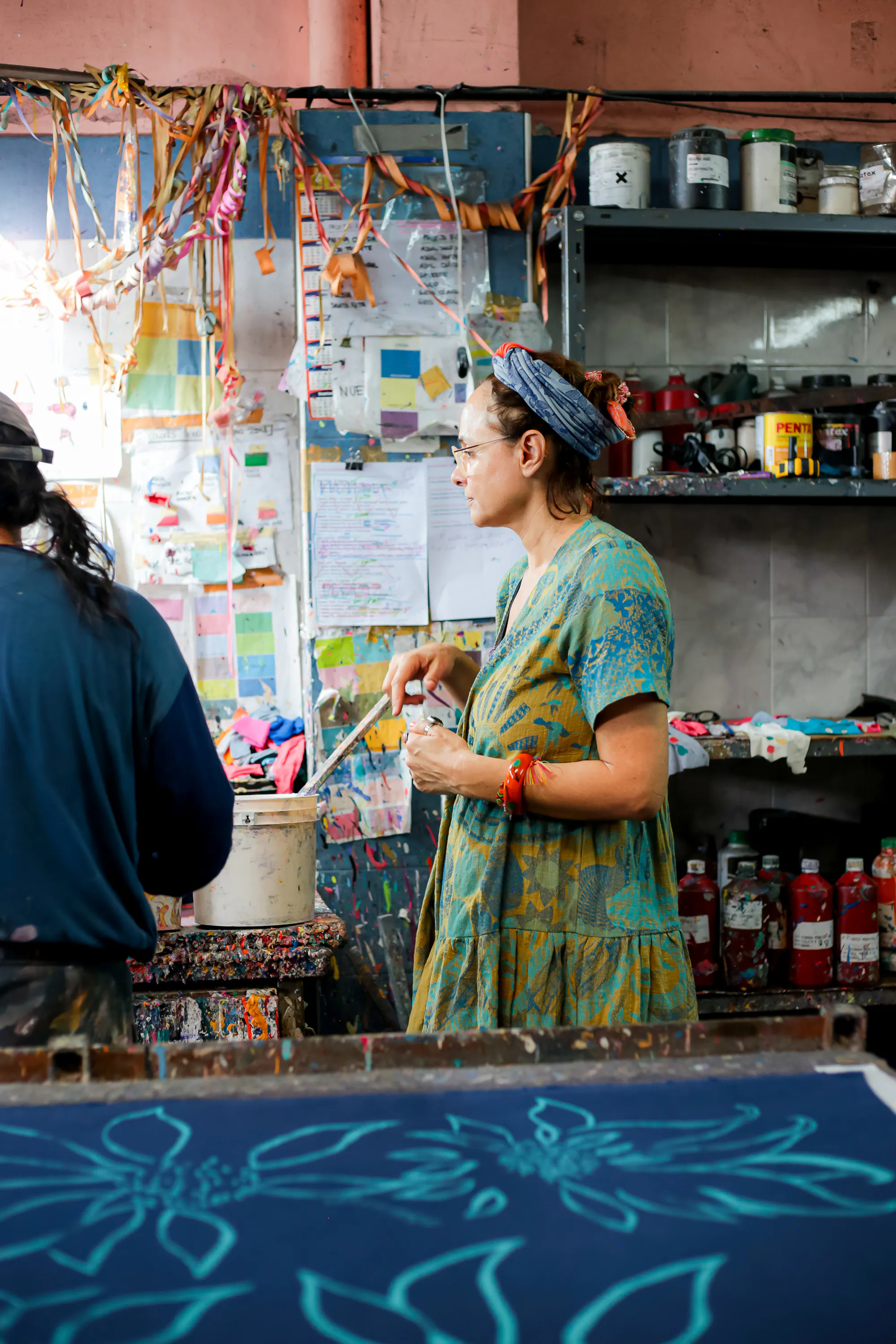 大量生産ではなくシルクスクリーンの版で生まれるテキスタイルはJuana de Arcoの魅力の立役者!