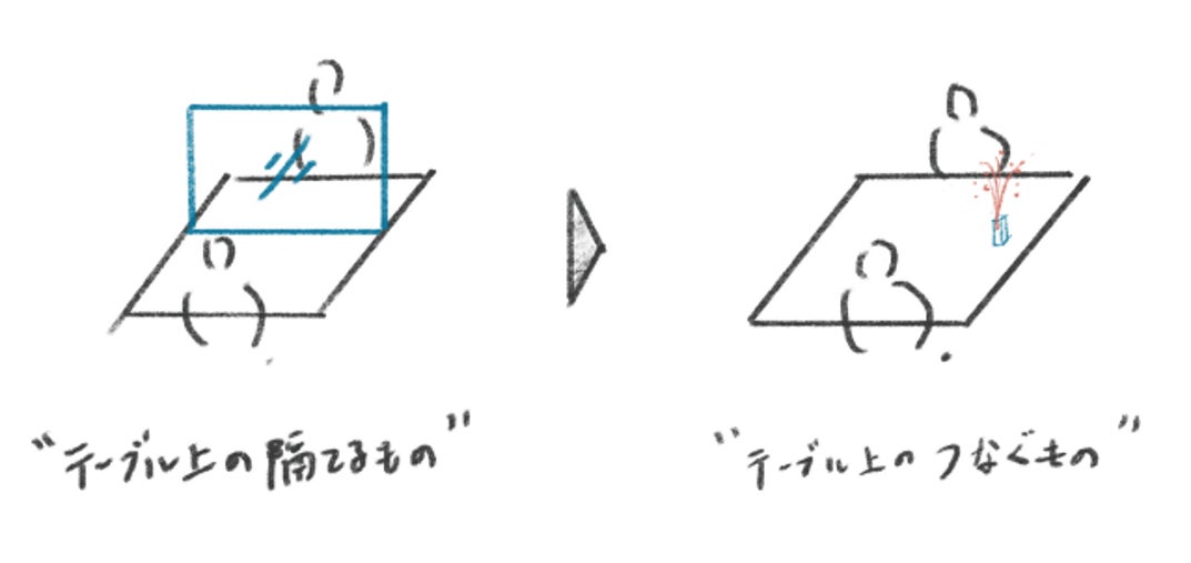 コロナ禍で、テーブルの上で人々を隔ていたパーティション。それが今度はテーブルの上で人々をつなぐものとして生まれ変わる。花を眺めながら「そんなこともあったね」と、これまでの数年間のことを話せるような日常をイメージしたコンセプトです。
