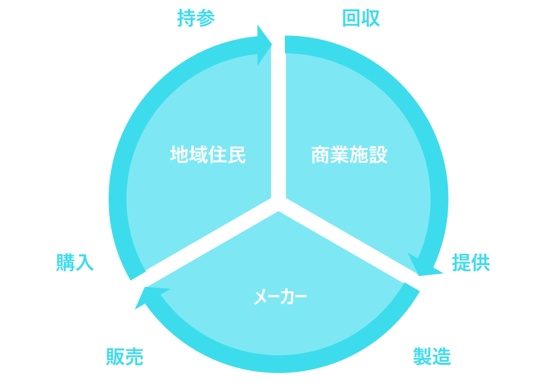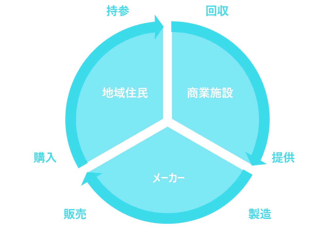 そこで考えたのが、複数の店舗が集積する商業施設から回収する方法です。商業施設内で余っている資源に加え、商業施設内で地域の方々から回収することも可能なのではないかと考えました。