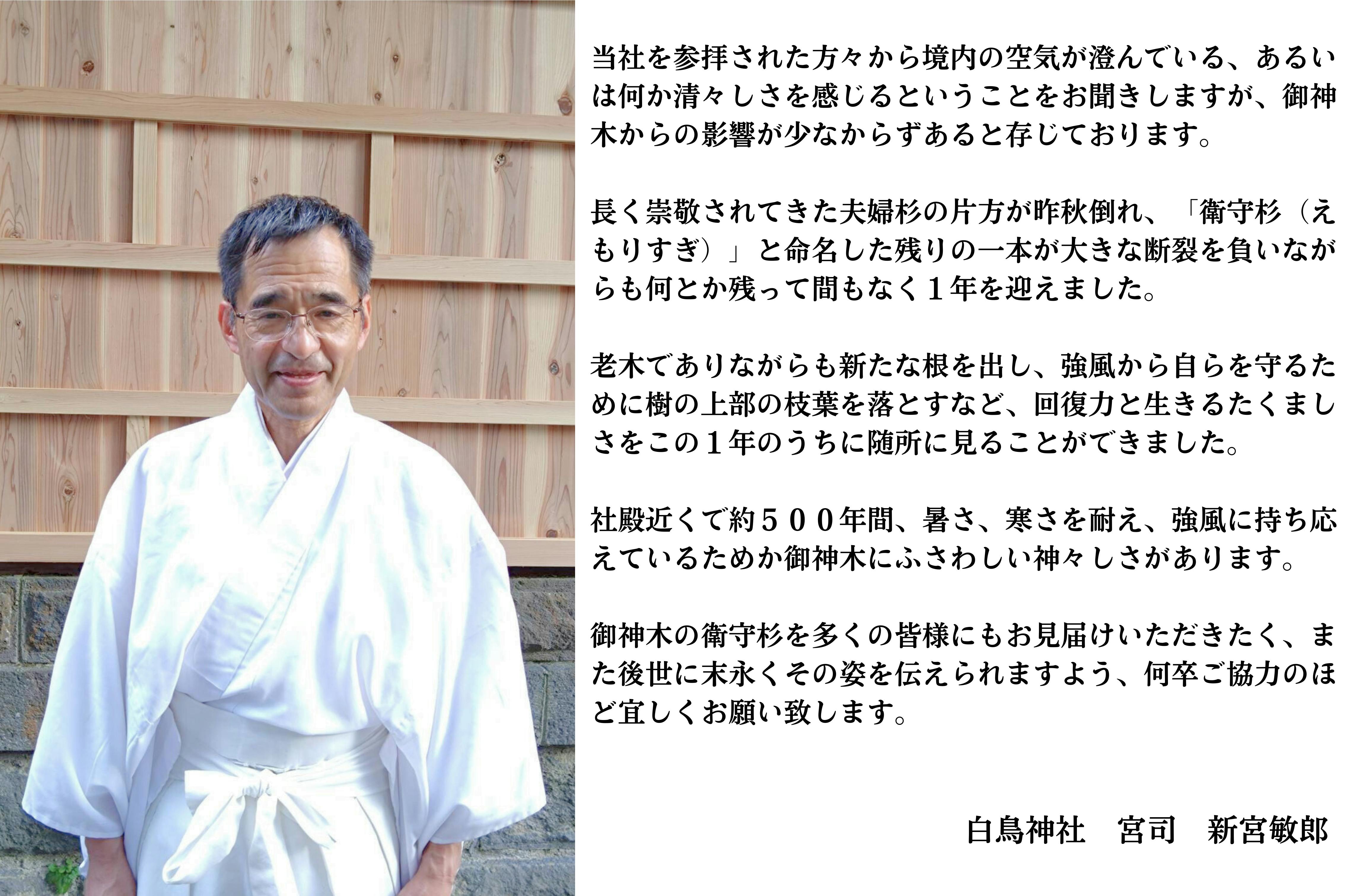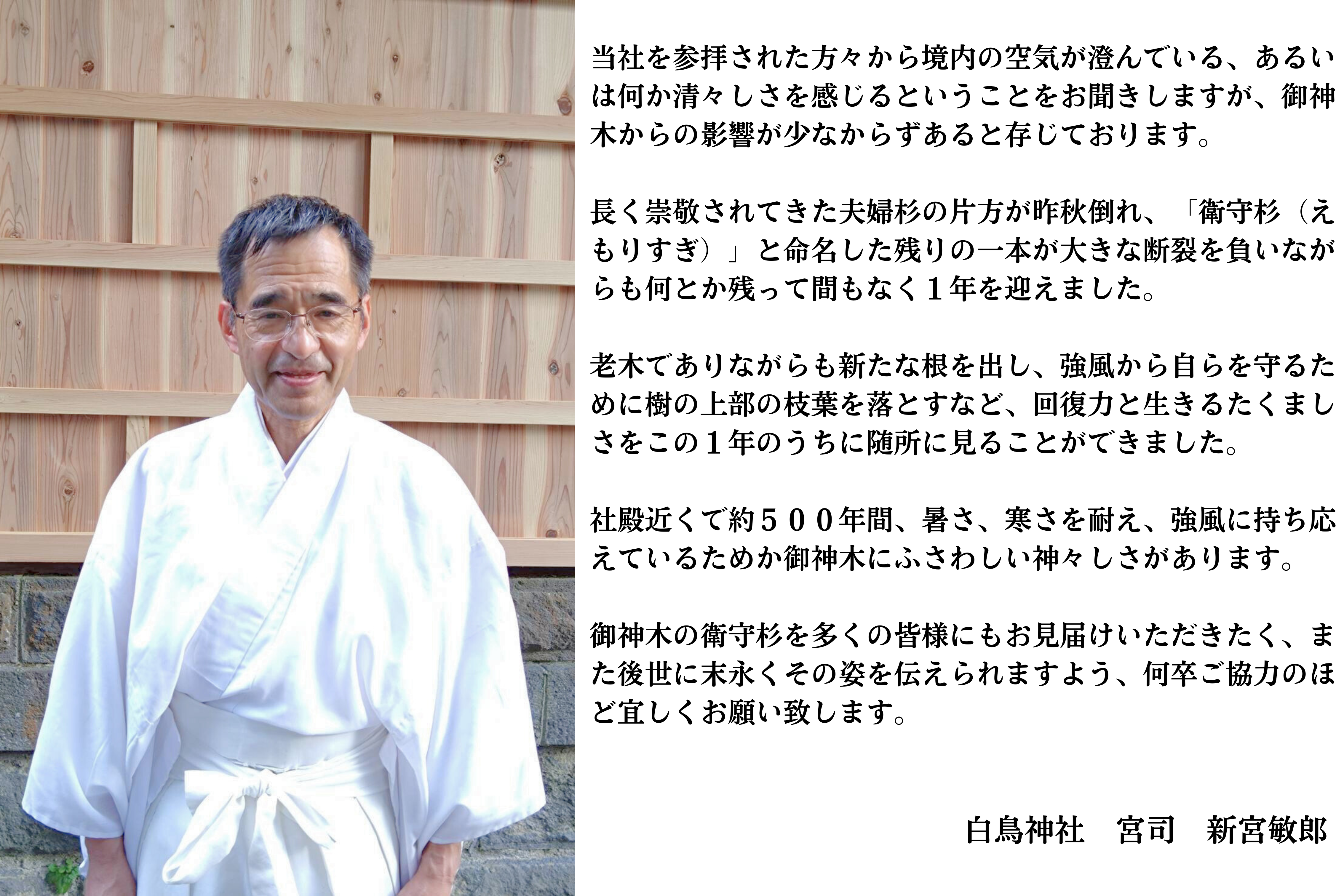 新たに1本となったこの御神木は、今後も白鳥神社を衛り、