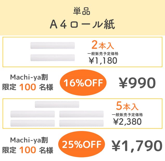 ※A4サイズロール紙は1ロールが約7mなのでA4用紙約23枚相当。