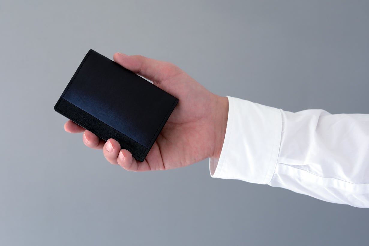 ビジネスパーソンなら誰もが日常的に行っている名刺交換。「美しいグラデーション」と「フィッシュレザー」で、「初めまして」の会話のきっかけになる名刺入れです。