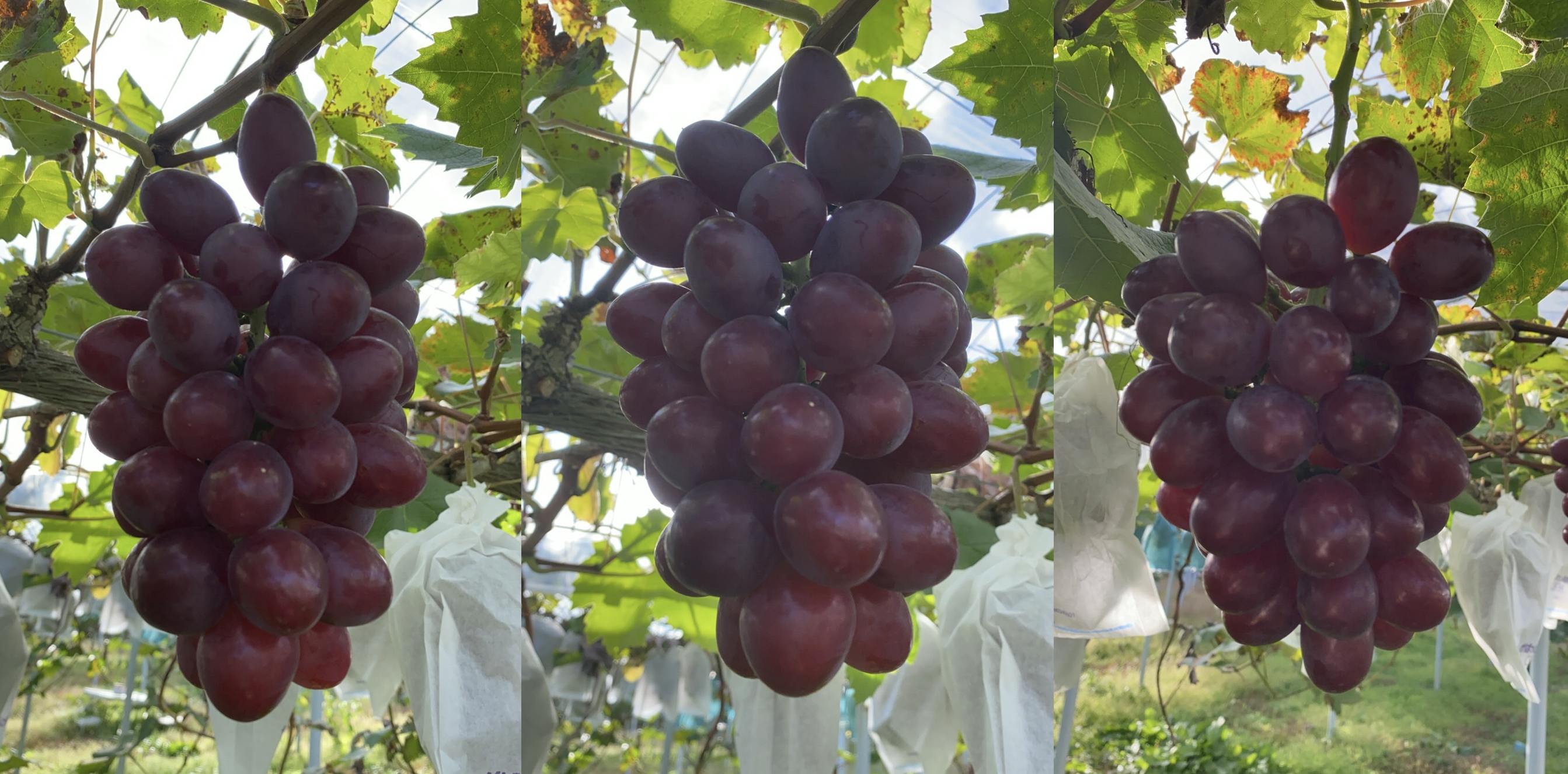 果皮ごと食べれる種無し葡萄で、完熟度が進むと果皮は紫黒色になります。