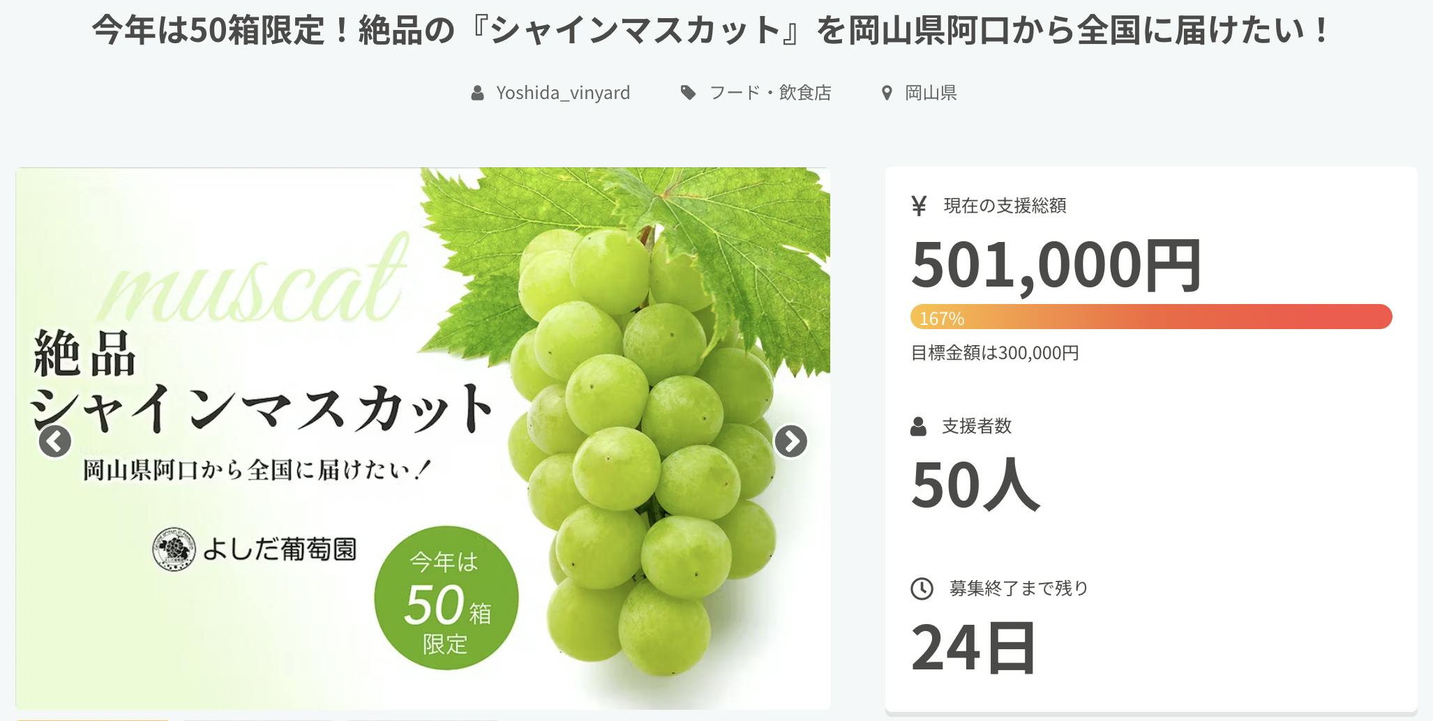 本日からシャインマスカットのクラウドファンディングがスタートしました!