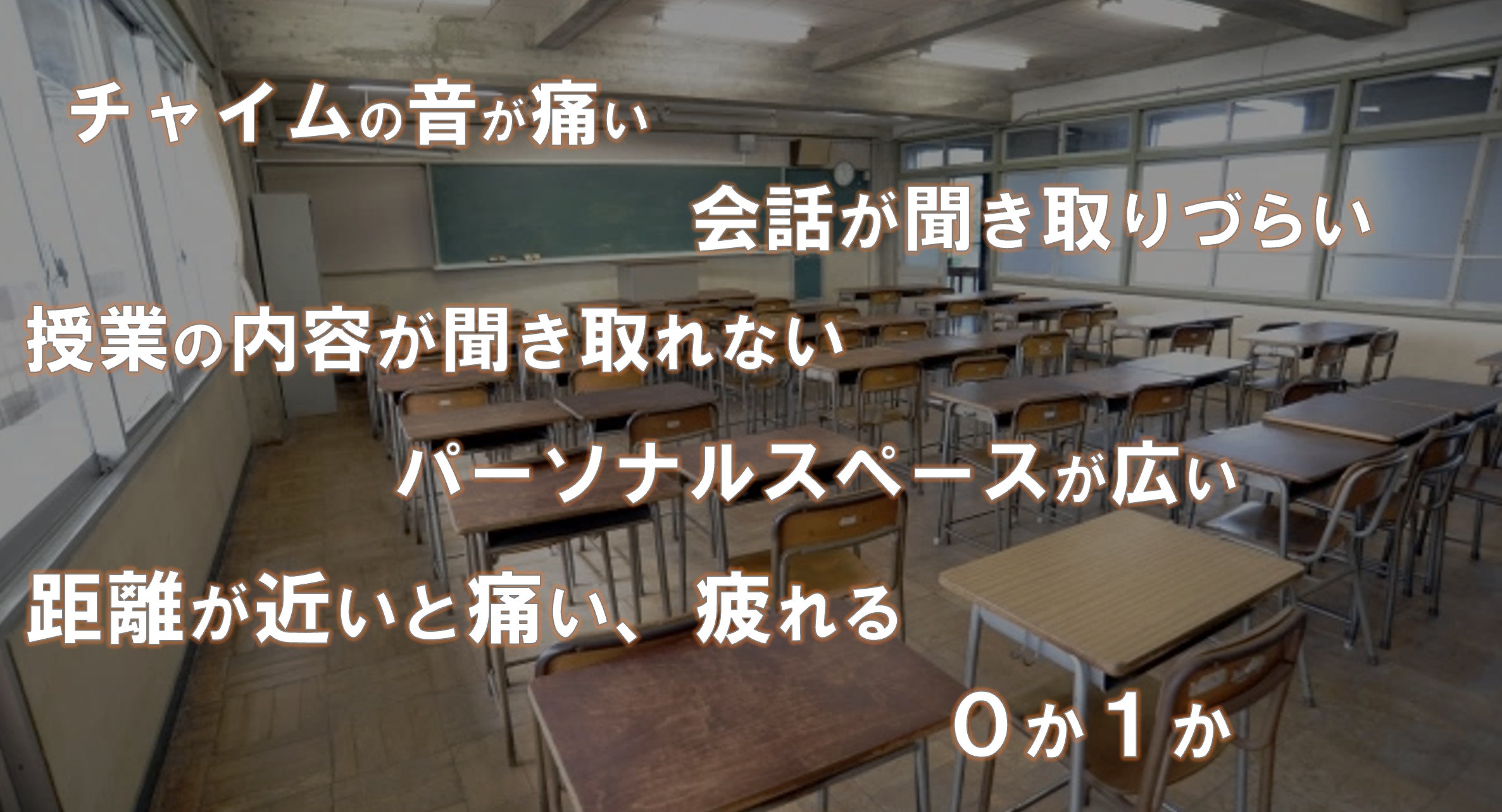 学校で1日過ごし続けるのが、どうしてもしんどくて、つらくて。今になって、やっと言語化できていますが、当時は、チャイムの音が矢が刺さるように痛く感じたり、パーソナルスペースが広く友達にボディタッチされるのがひどく苦手だったり。その場に居続けることにとてもエネルギーが必要でした。
