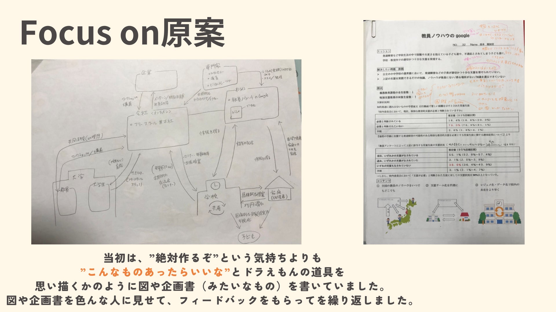 それでもなお、「なぜかわかってもらえない状況」「合う支援/環境を作るのに、すごく時間と労力がかかる状況」がありました。私は、これはヒトの問題ではなく、支援を行うためのシステムや構造の問題ではないかと感じるようになりました。そもそも支援を受ける私の困り事を、”私が”伝えるタイミングや手段がないこと。そして、私に対する支援にも関わらず、私がリアクションするタイミングが最初から設計されていないこと、の2点に違和感を持ちました。そして、私の見ている世界を覗いてもらえたらいいのに!」と考えるようになりました。