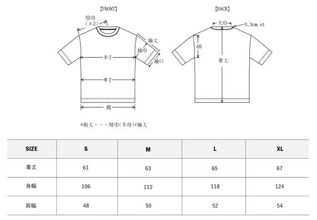 身幅、肩幅はゆったりとした着用感です。着丈はすっきりしているのでだらしなく見えずに上品な印象を与えます。