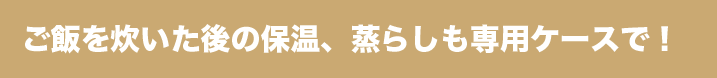 本体でレトルトカレーの温めと同時に、中蓋で水蒸気炊飯!水蒸気炊飯は直接クッカーを火にかけることがないので、飯盒炊飯特有の“焦げつき”などの失敗がありません。もちろんレトルトカレーではなく、本格的にルーを使用したカレーを煮込んでいる水蒸気で同時にご飯も炊けるといった、同時調理が可能なのです。