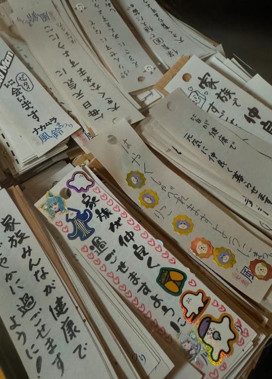 境内に1000個以上の風鈴を吊るし、風鈴の音色で厄をはらい、願いが風に乗って、神様に伝わりますようにと行われている祭事です。その大切な風鈴の音色を生み出しているのが、願いが書かれた多くの短冊です。