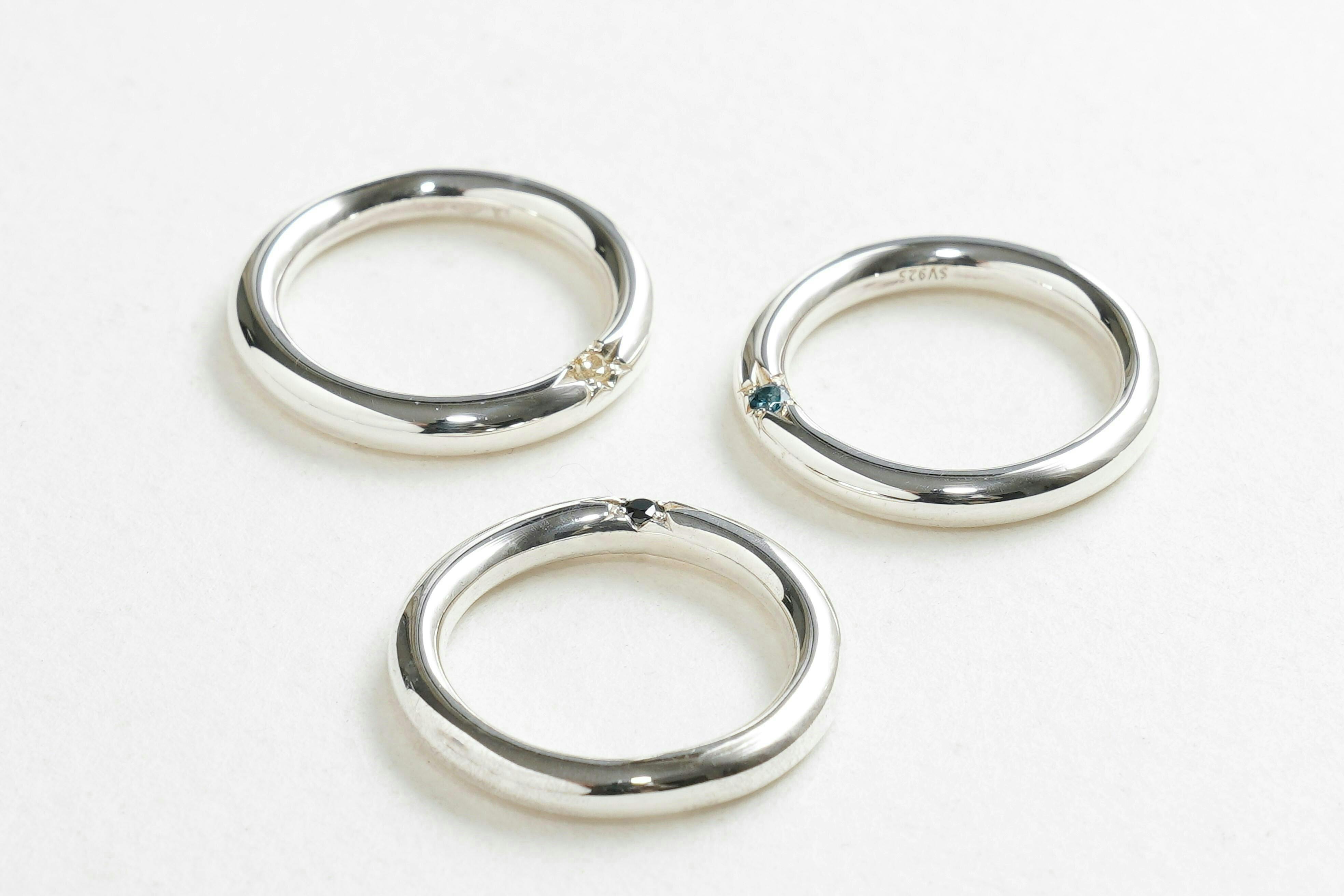 従来は3.5mmの太め幅と2mmの細め幅で側面埋め込み石リングの発売をしておりましたが、お客様からのご要望もあり、その中間の3mm幅。もっとも石が綺麗に見える商品開発を行いました。