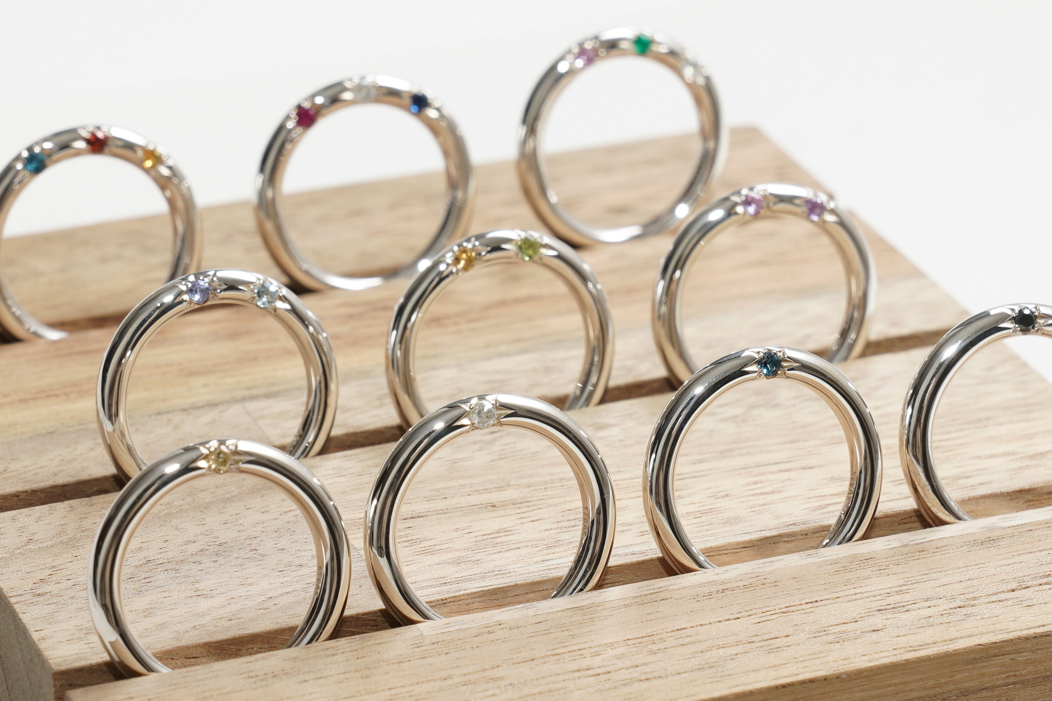 リングには1石、2石、3石とお好きなデザインを選んでいただき、お好きな誕生石を埋め込むことができます。ご自身の誕生月だけでなく、恋人やパートナーと合わせた2石を選んでいただいたり、お子さんを含めた3石を埋め込んだファミリーリングなどデザインはあなた次第。誕生石の組み合わせをカスタムできるからこそ、あなただけの特別なリングをお楽しみください。