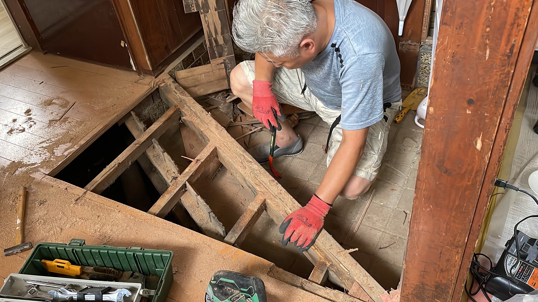 新たな入口を作るため1Fの部屋の押入れを解体しつなげます
